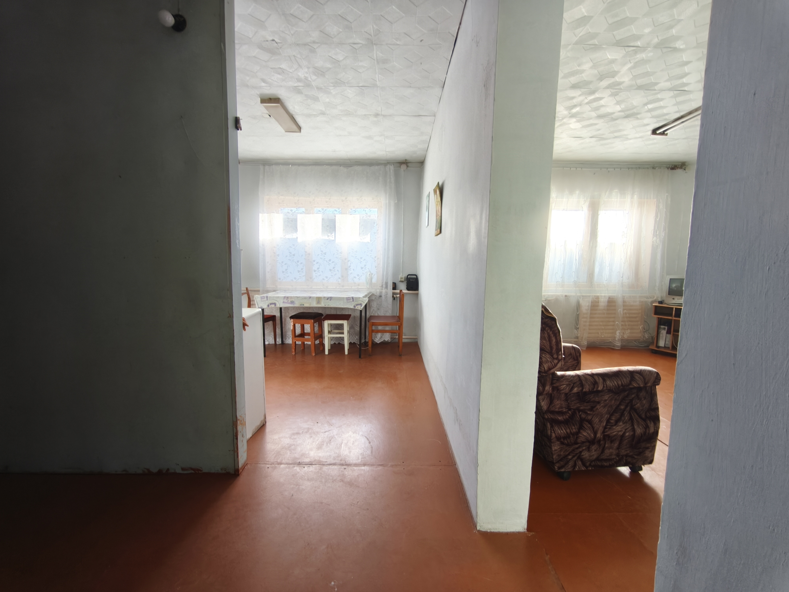65 кв. м. Вода в доме. Отопление печное, батареи. Рядом автовокзал, магазины.  Гараж. Баня.